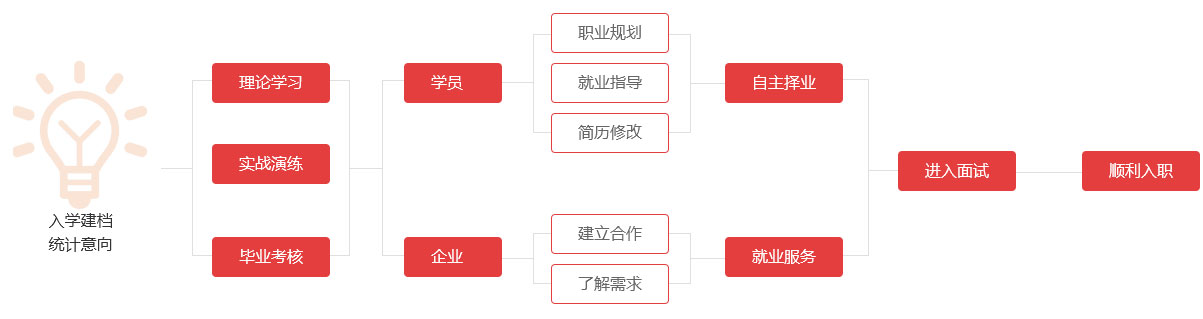 进行一对一的就业指导,提供修改简历、培训面试技巧、模拟真实面试场景、就业等多重服务。